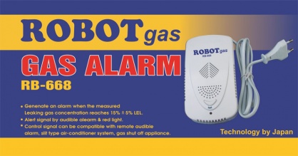Thiết bị cảnh báo rò rỉ khí gas Robot Gas RB-668 là loại thiết bị cảm biến điện tử có độ bền và ổn định cao. Thiết bị sử dụng nhằm phát hiện sớm khí gas rò rỉ, rất tiện dụng và an toàn cho gia đình, nhà hàng, khách sạn, ... Thiết bị sản xuất tại Việt Nam theo công nghệ Nhật Bản.